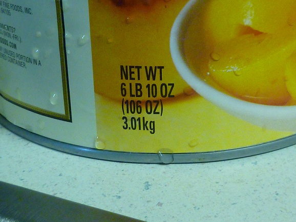 I came home yesterday to find that hubby bought a can of peaches. From Costco. Six pounds. Six pounds of peaches. Six pounds of peaches in one can.