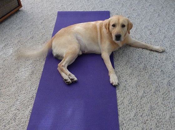 Yoga with Dusty (s) Published November 9, 2013 at 560 × 416 in Weekly Photo Challenge: Habit It’s a real workout, trying to do my morning stretches around Dusty Dog on a yoga mat