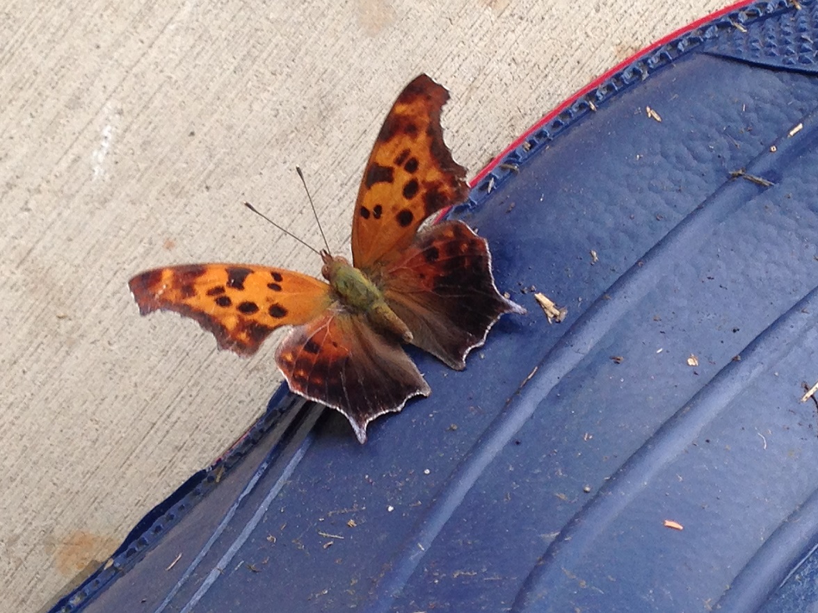 A butterfly on my boot as I sat on the front porch