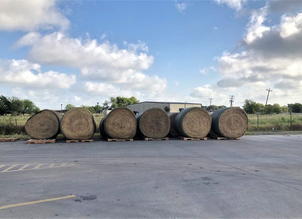 Round Bales of Hay Posted on August 15, 2020 by treshabarger One round bale of hay contains about the same amount of 20 square bales of hay. Somewhere in Lockhart, Texas Share this: Share on Facebook (Opens in new window) Facebook Share on X (Opens in new window) X Like Loading... Related