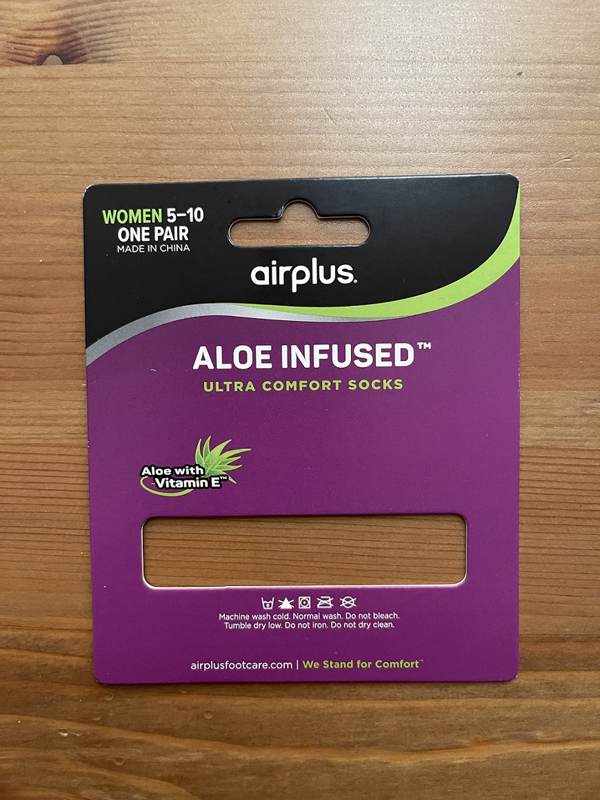 I participated in a Secret Santa Swap this year. My box of goodies arrived Monday. (I mailed mine in early November. This was a round-robin swap; we weren’t paired up with the same two people mailing gifts to each other.) One item I received was a pair of Aloe Infused Socks. Even before washing, these felt like the softest socks ever.
