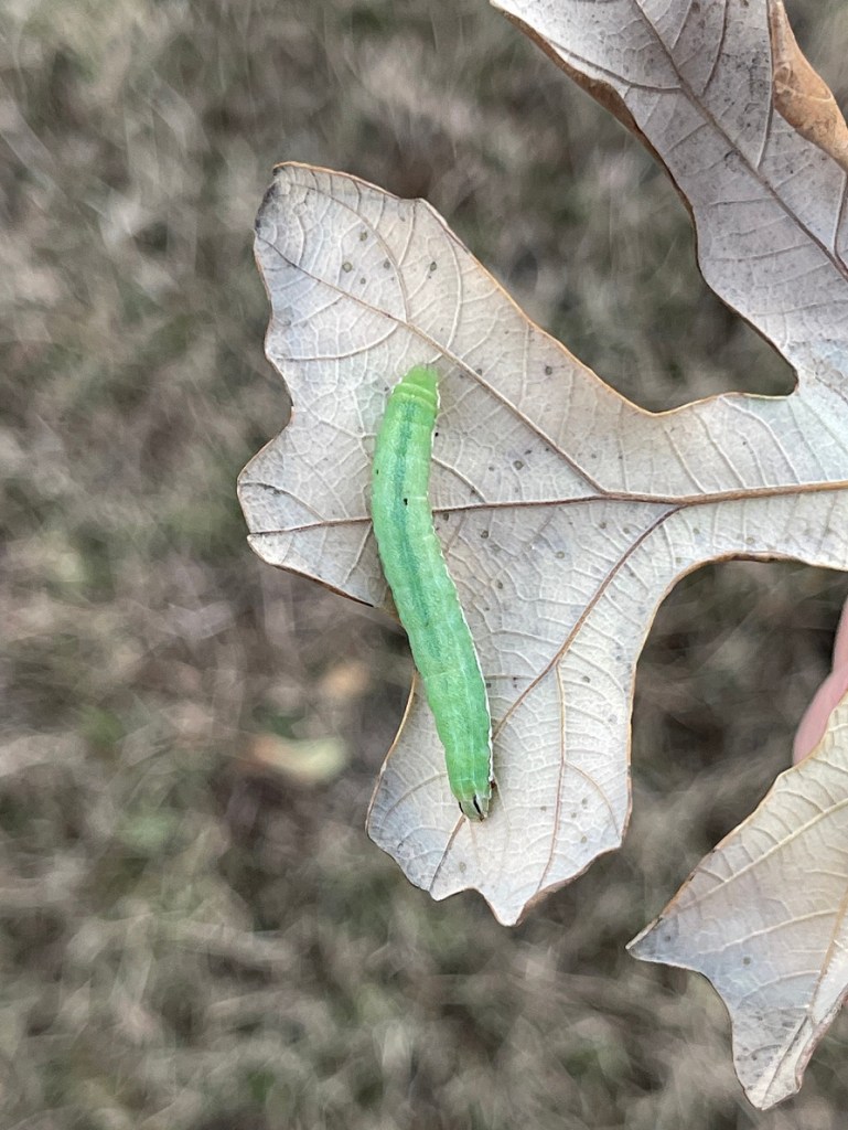 Green Caterpillar Posted on December 6, 2022 by treshabarger I do not know what kind of caterpillar this is. It was roaming around in late November. Share this: Share on Facebook (Opens in new window) Facebook Share on X (Opens in new window) X Like Loading... Related