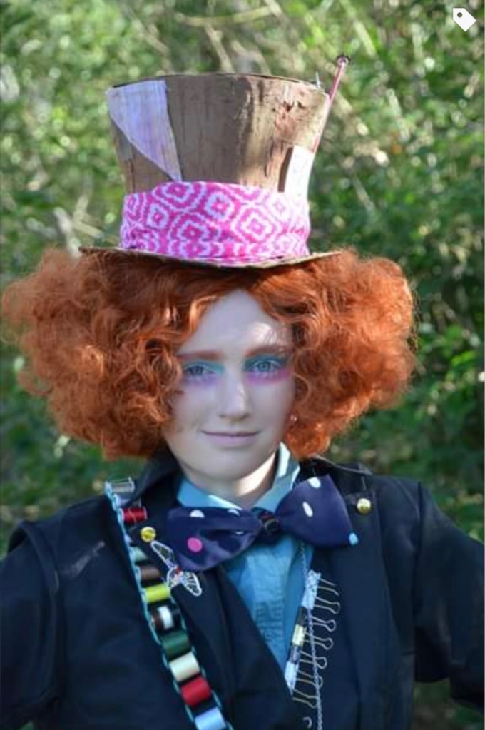 Recognize this person? No? Neither did I, and she is someone I’ve known for years. This is Catherine (a teenager) and she made the Halloween costume herself. I just love it!